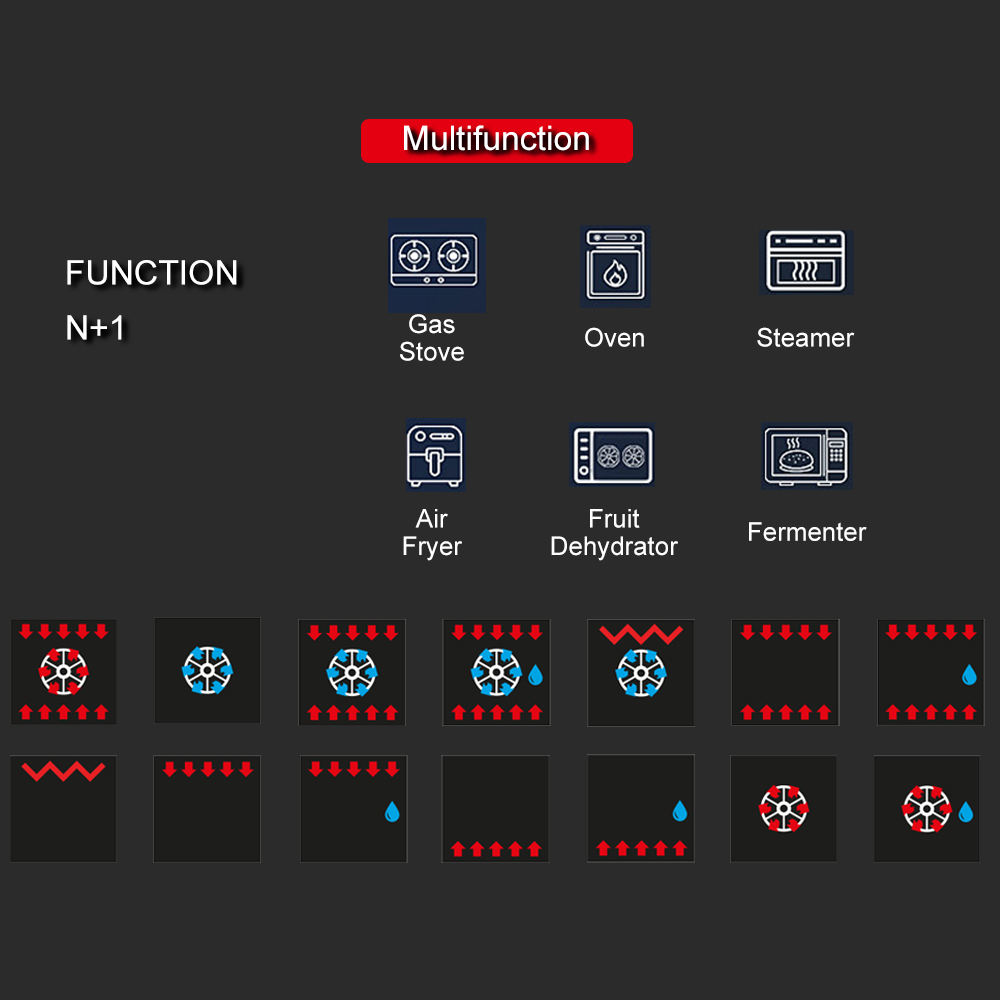 3. Vstavaná rúra: Vstavaná veľká kapacitná rúra podporuje rôzne režimy varenia, ako je pečenie, grilovanie, horúci vzduch, atď., Aby sa uspokojili potreby varenia rôznych zložiek a riadu.